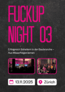 2025 Do. 13. November Vortrag Fuckup Night 03 smino Reservoir, Bolleystrasse 35, 8006 Zürich – 12:00 Uhr Vortrag Fuckup Night 03