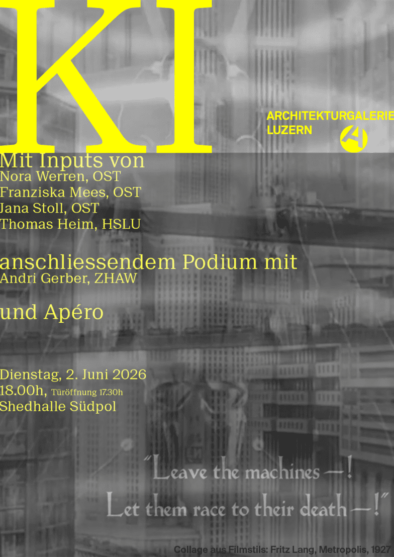 Künstliche Intelligenz (KI) ist in aller Munde. Alle sprechen darüber, nur wenige wissen richtig Bescheid. Wir zeigen auf, was der aktuelle Stand in Architektur- und Landschaftsarchitekturbüros ist und zeigen konkret, wie uns KI im (Berufs)-Alltag unterstützen kann. Zudem wagen wir einen Blick in die Zukunft und diskutieren mit dem Publikum und den Vortragen:den über die Chancen und Risiken der KI.